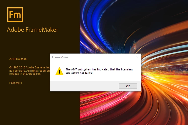 To be even weirder, suddenly all FM files have the FM icon back. I even tried to open a FM file and somehow, FrameMaker tries to open. (How if it never get installed?) But I get an error 5. "The AMT subsystem has indicated that the licensing subsystem has failed". Seriously ADOBE? I mean, I am logged on to Creative Cloud but your subsystem cannot identify me for FrameMaker?