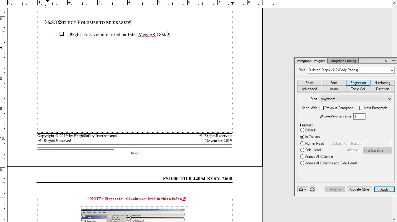 There are several places in my document that I have blank space that shouldn't be there I cant find any page breaks or any reason why the Note:Repeat steps for ..... should fit on the previous page niether paaragraph style is attached to the previous or next paragraphs. I turned on text symbols to see if I could find any rouge carriage returns or any other reasons that there would be so much blank space. Any suggestions would be awesome. Thank you.