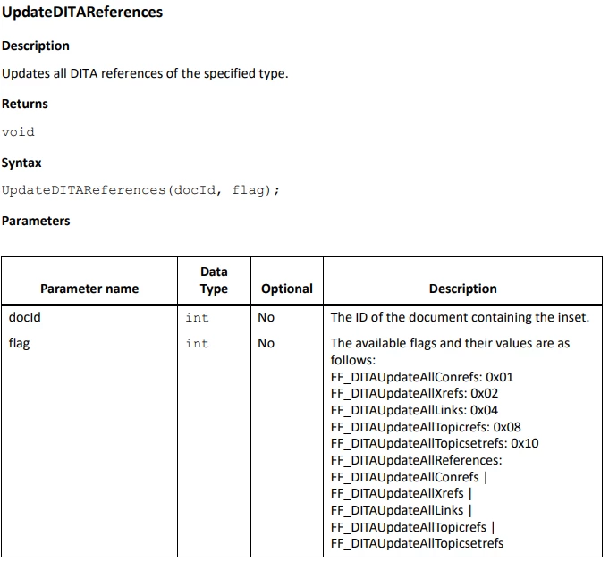 UpdateDITAReferences(flag) ExtandScript documentation syntax mismatch