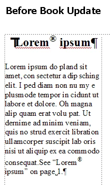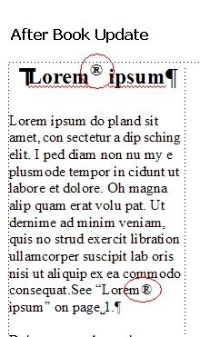 I am working in unstructured FrameMaker 10, and I have several cross-references that contain a registered trademark symbol. I have created a character tag specifically for the superscript. Everything works fine until I use the Update Book function. This function causes the superscript in the cross-references to be removed. I have to go back an update each cross-reference or chapter individually. Anyone have an idea how these can be updated from the book level without losing the superscripts? The table of contents is unaffected and shows the superscript after automatic updating. Thanks!