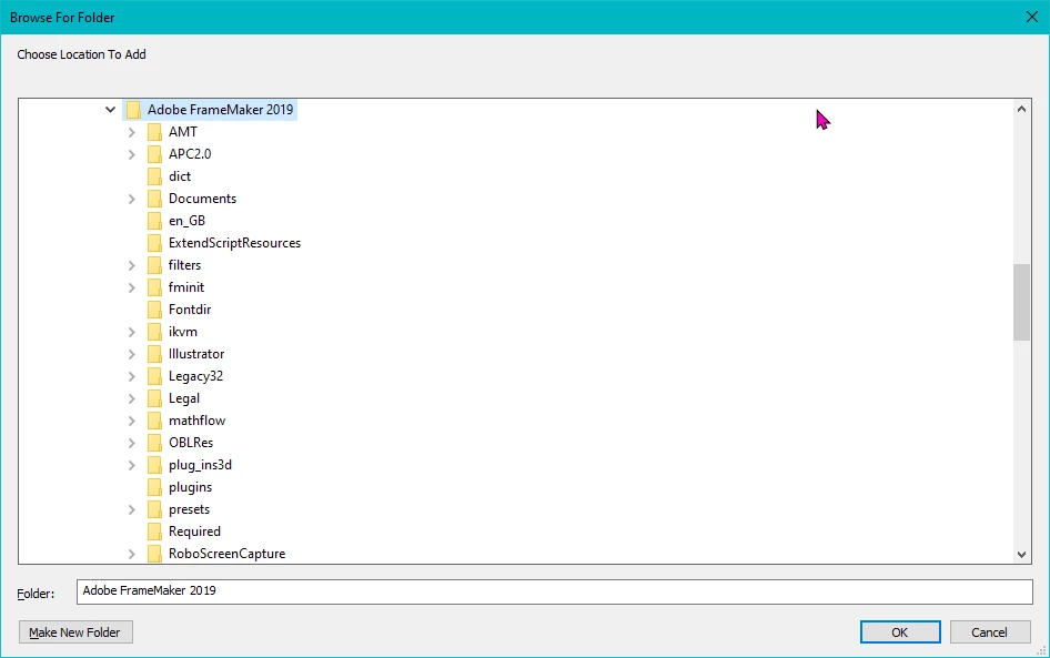 - Even in a yet empty project it is not possible to define such a folder, the button Add Folder is inactive then.