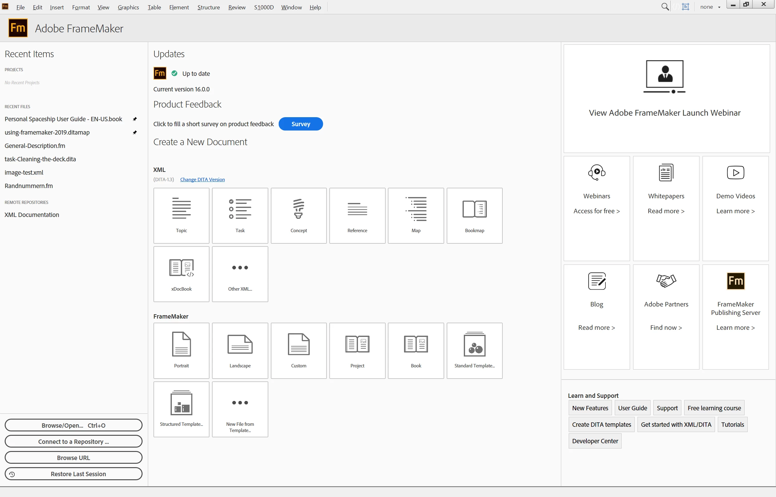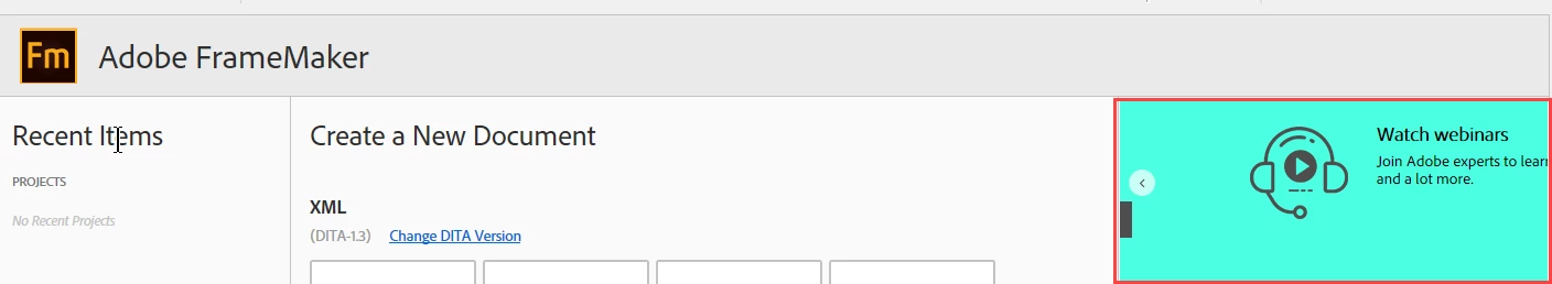In FrameMaker Summer 2020 release the welcome screen looks like this.