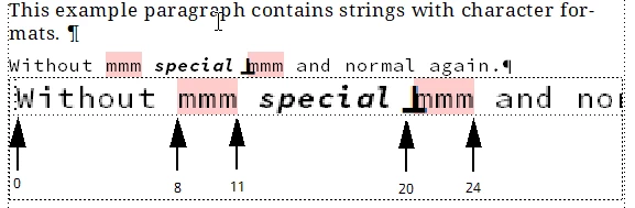 I know that anchors of any types add 1 to an offset and that element boundaries also add 1. But how about character formats? My experiments show, that they do not count, but in the problem discussed here, they obviously have an influence. I use the following script to check the selection or location: