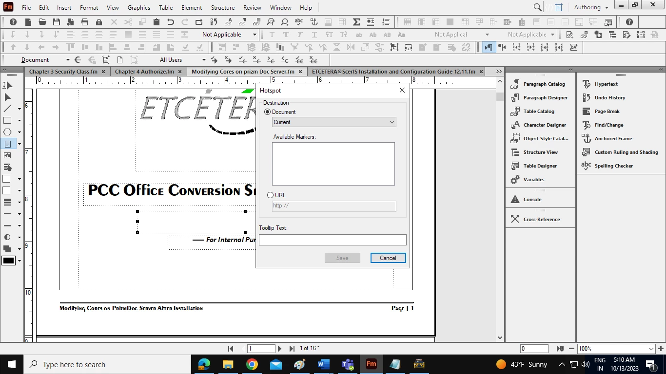 When I am taking new text frame in Frame Maker, hotspot window is popping up
