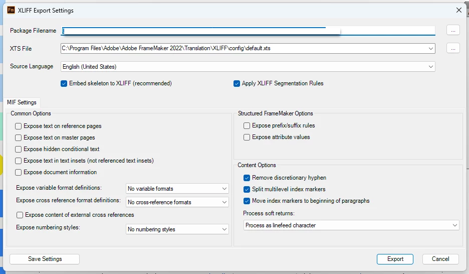 after updating FM to 17.0.5, it's not possible for me to export a book to XLIFF. I tried different approaches with large/small/real/test books. Each approach ends in the following error message: