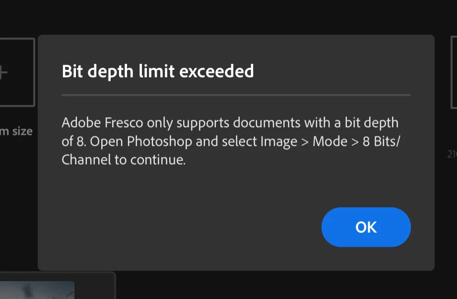 Adobe Fresco: Bit depth limit exceeded
