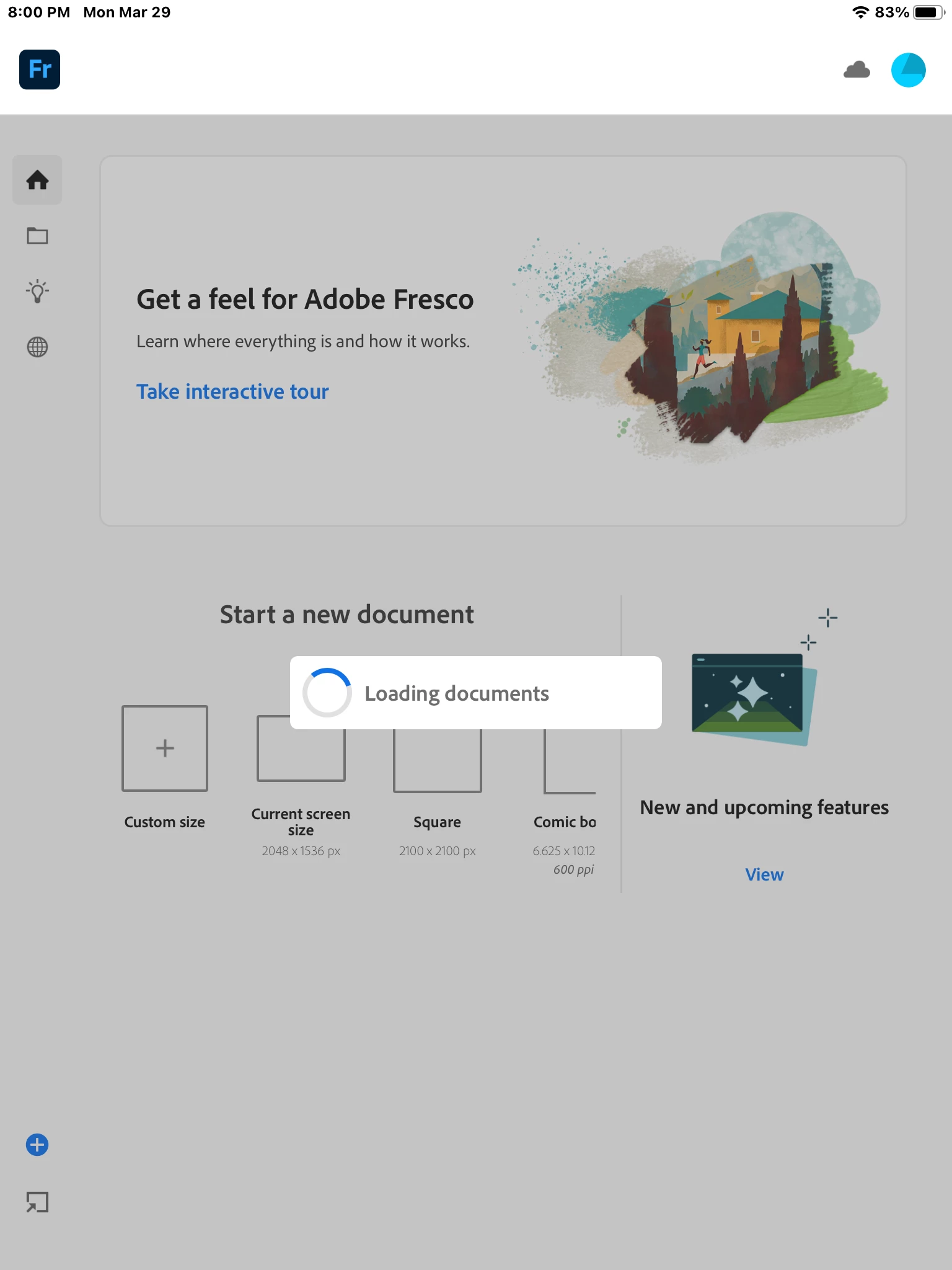 Adobe fresco crashes after few minutes trying to access my cloud documents.