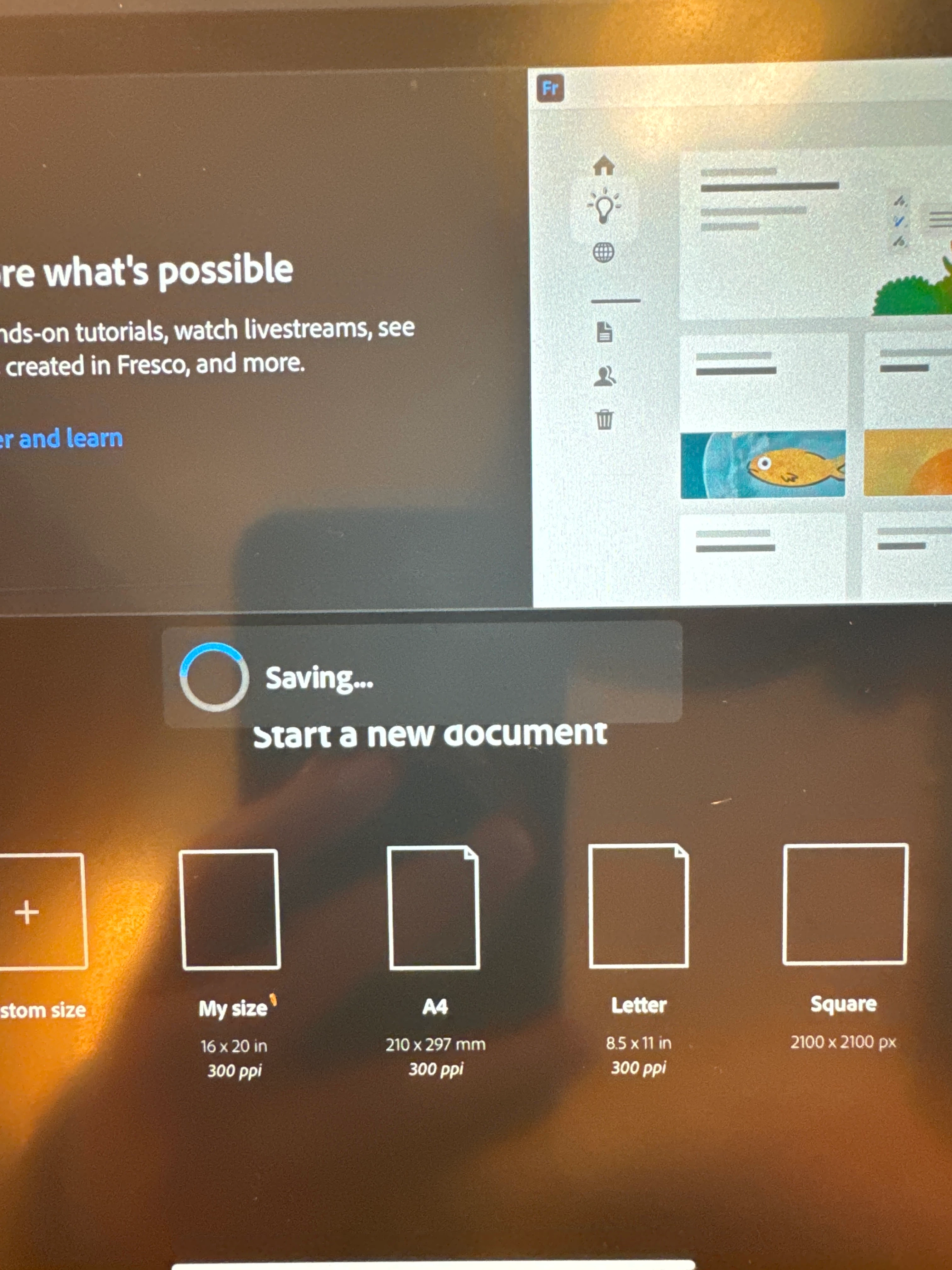 Adobe Fresco stuck on “Saving…” when first opened