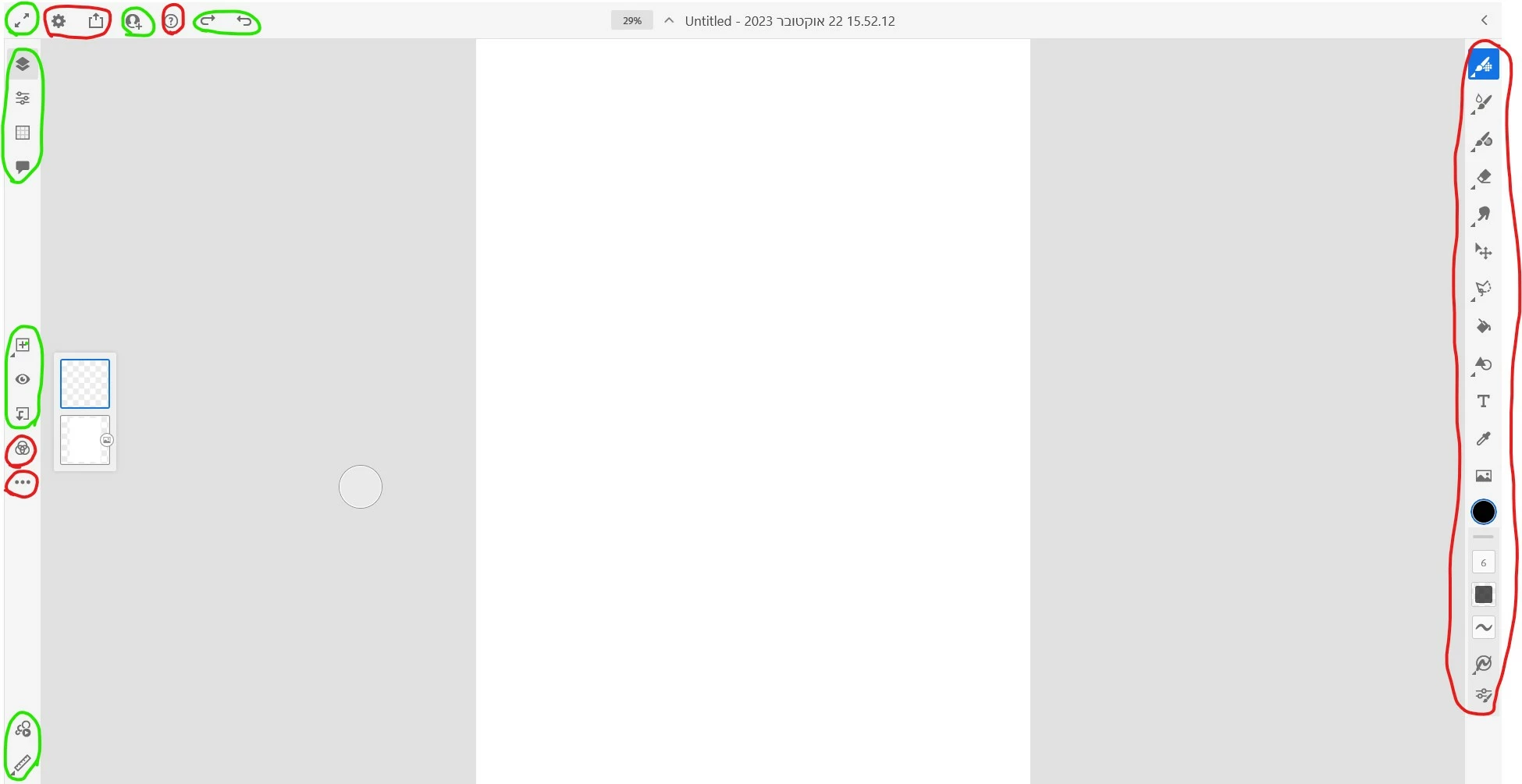 The color selection button doesn't work either and in fact all the buttons I circled with a red pen in the added image below don't work.
