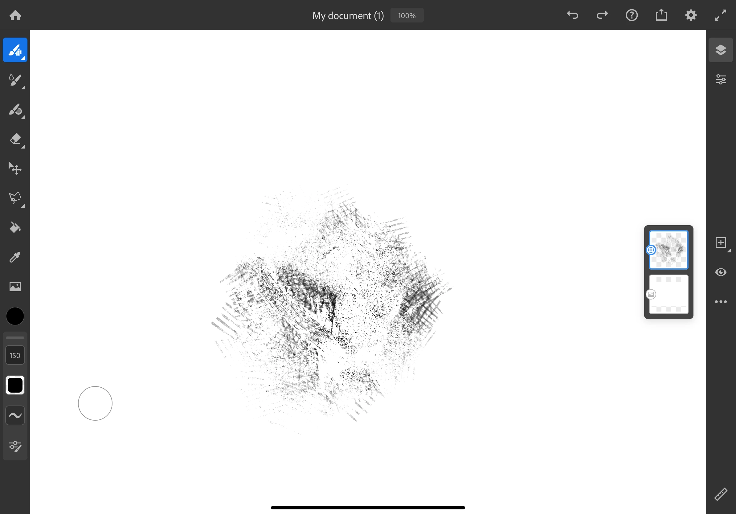 I have included an image of the crosshatch brush with my Apple pen. I drew a scribble for 10 seconds, note the lighter space in the middle. I ran the pen over that spot multiple times with no ink added to the image.
