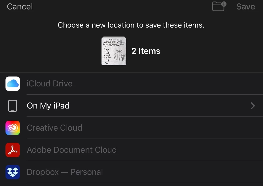 Can't Save Files to iPad Dropbox, Creative Cloud, Others