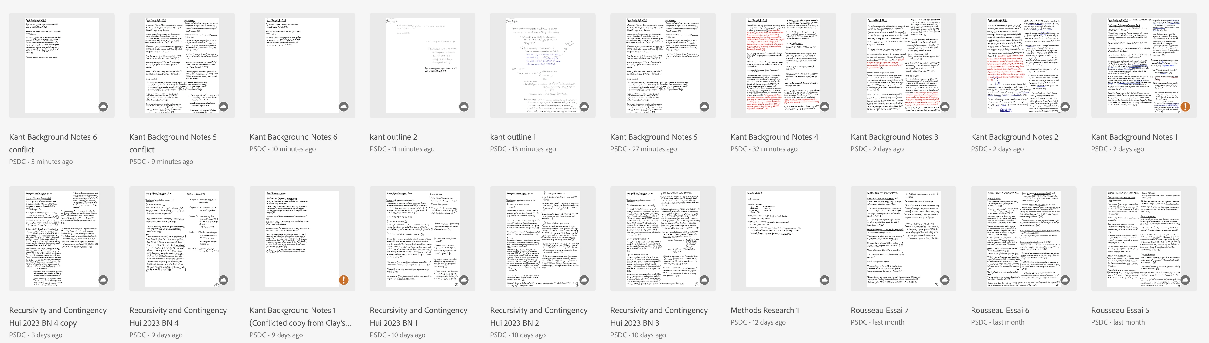 Conflicted copies of class and reading notes between ipad fresco