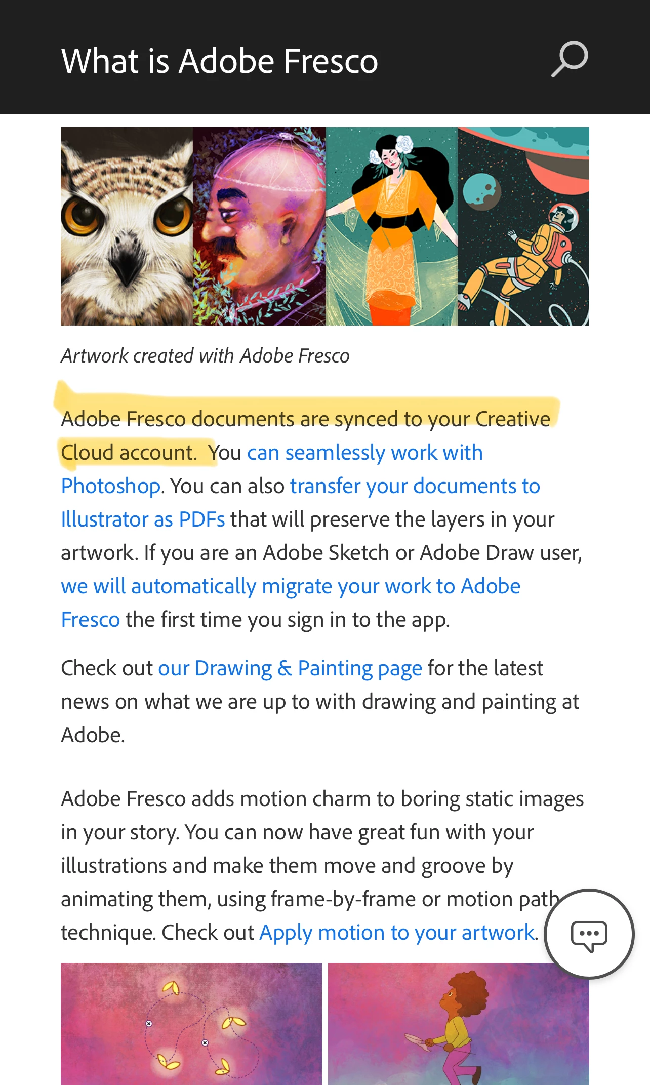In Adobe Fresco, all your artworks live in the cloud in the form of Cloud Documents, which is not impacted by this change. Learn more here: (https://adobe.ly/48UWQo0).