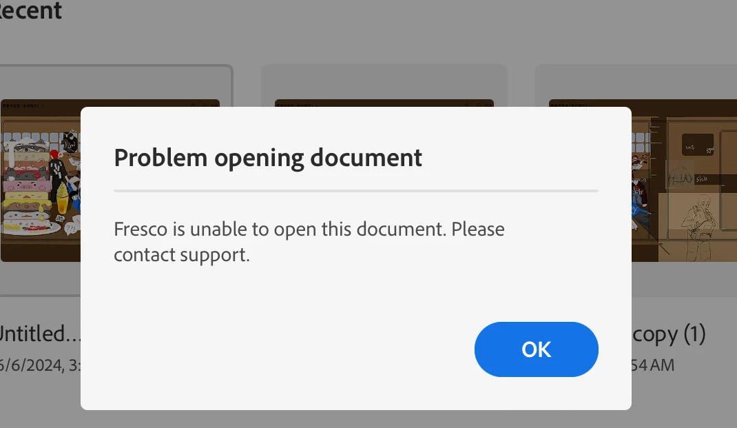 Fresco is unable to open this document. Please contact support.