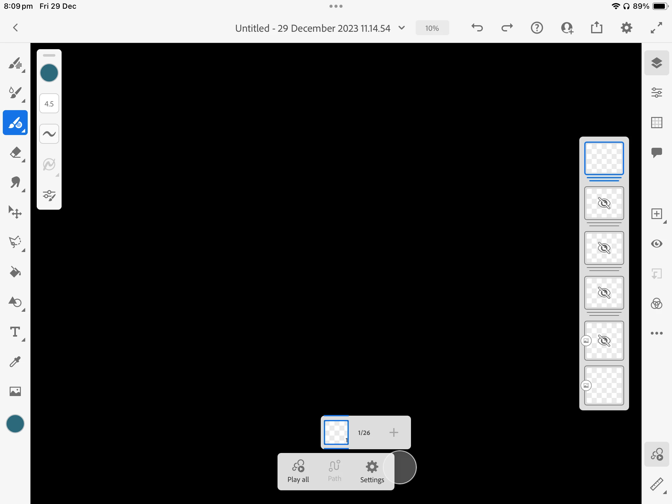 This has happened at least three times now - I'm trying to create an animation in Adobe Fresco on my iPad, maybe about 20 or 30 frames long, when the app suddenly crashes. This happens all the time and I can deal with it, but it also hides every single layer and erases everything on it, including the background and all... the frames... of my animations... effectively killing hours of work for seemingly no reason... Additionally, it turns the screen entirely black and prevents me from being able to edit this project anymore. Also, if I bin this afterwards, it becomes unrecoverable.