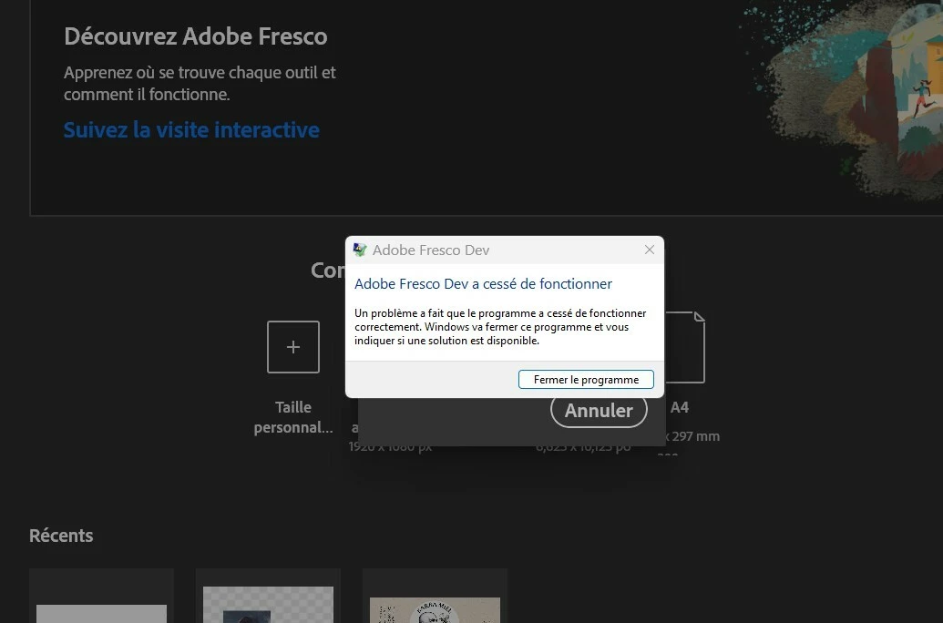 Fresco plante à l'ouverture d'un fichier - Windows 11 - v.5.7.0