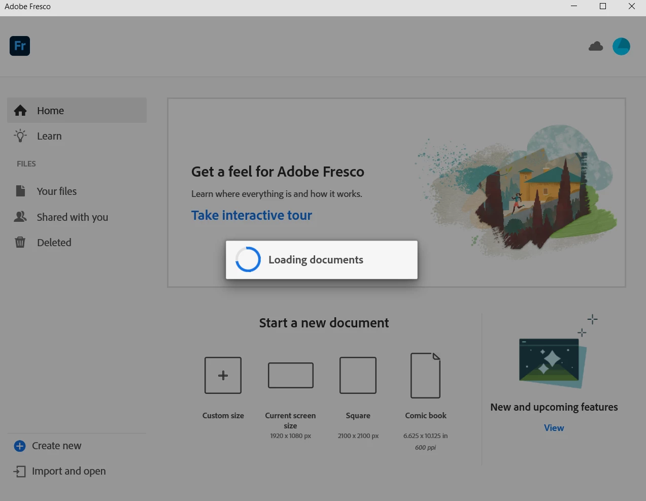 What happens when I launch Fresco: it opens, and immediately starts to "loading documents"... after about 30 seconds of this dialog, it just goes away. No crash report, nothing.