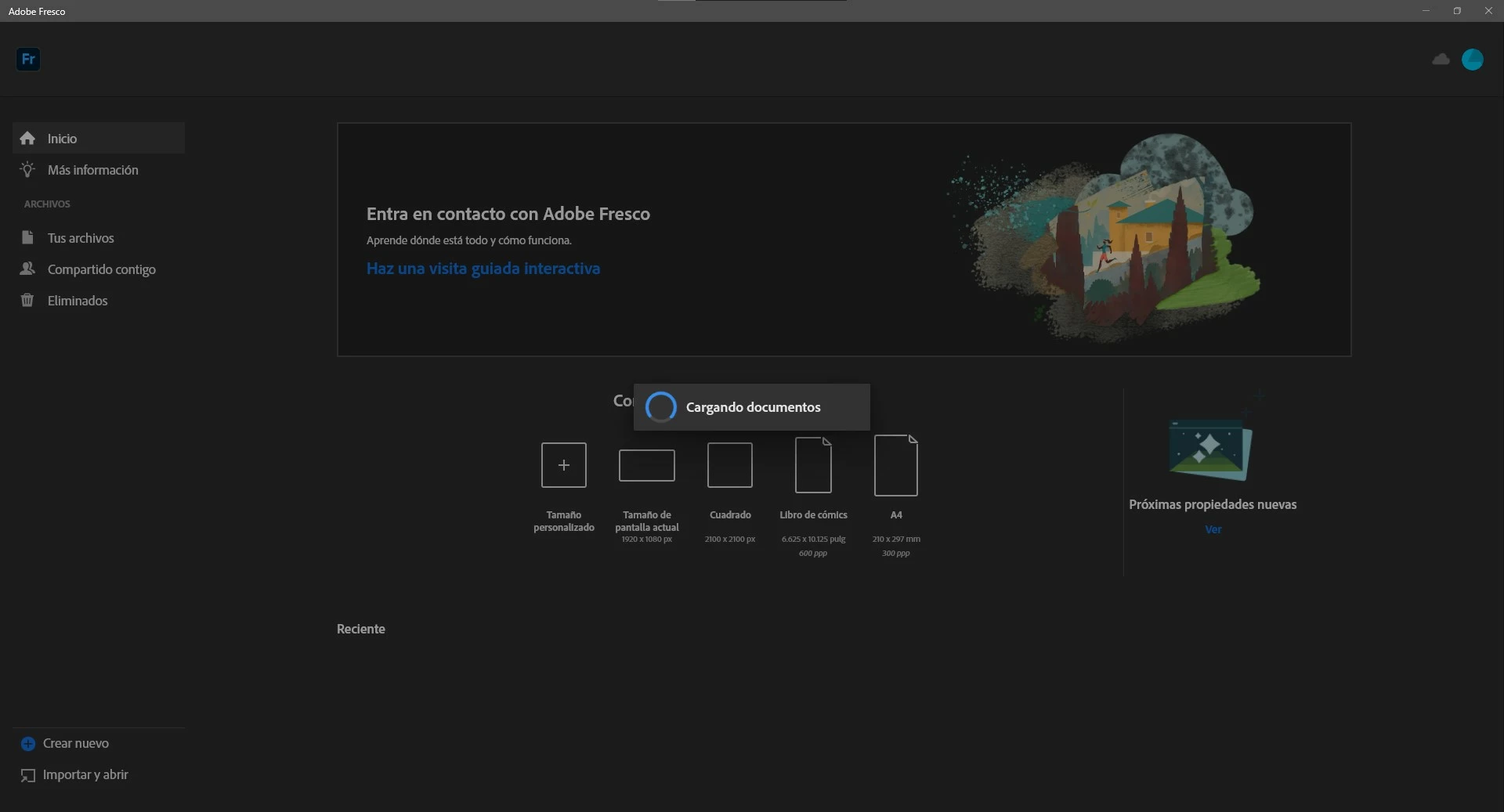 I installed Adobe Fresco yesterday on my Windows computer. However, whenever I try to open it is says ''loading documents'' and then shuts down. There are no files to open, because I haven't worked with Fresco yet.