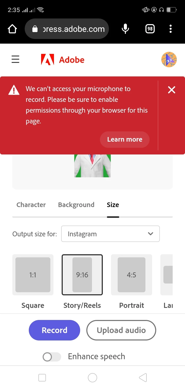 How do I add audio to my animations/artwork in Adobe Fresco?