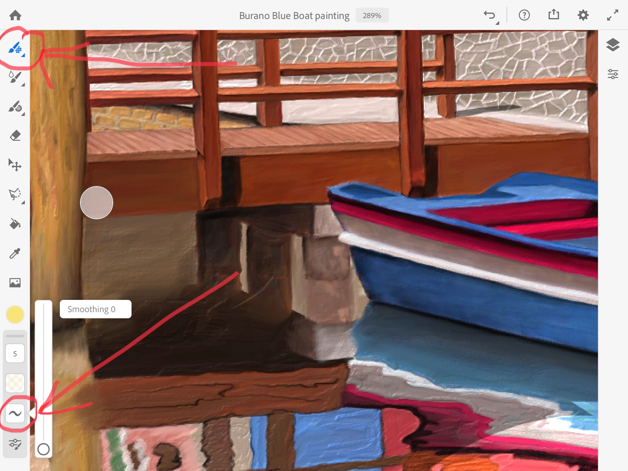 The pixel brush (top left) has a smoothing setting (ribbon at lower left).