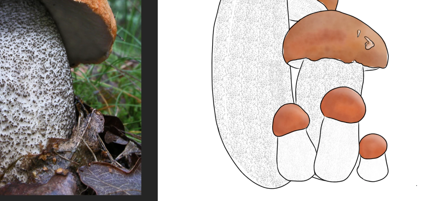 Im drawing mushrooms in Adobe Fresco. Many of them have some specific patterns on their stem, like a net or some flakes.