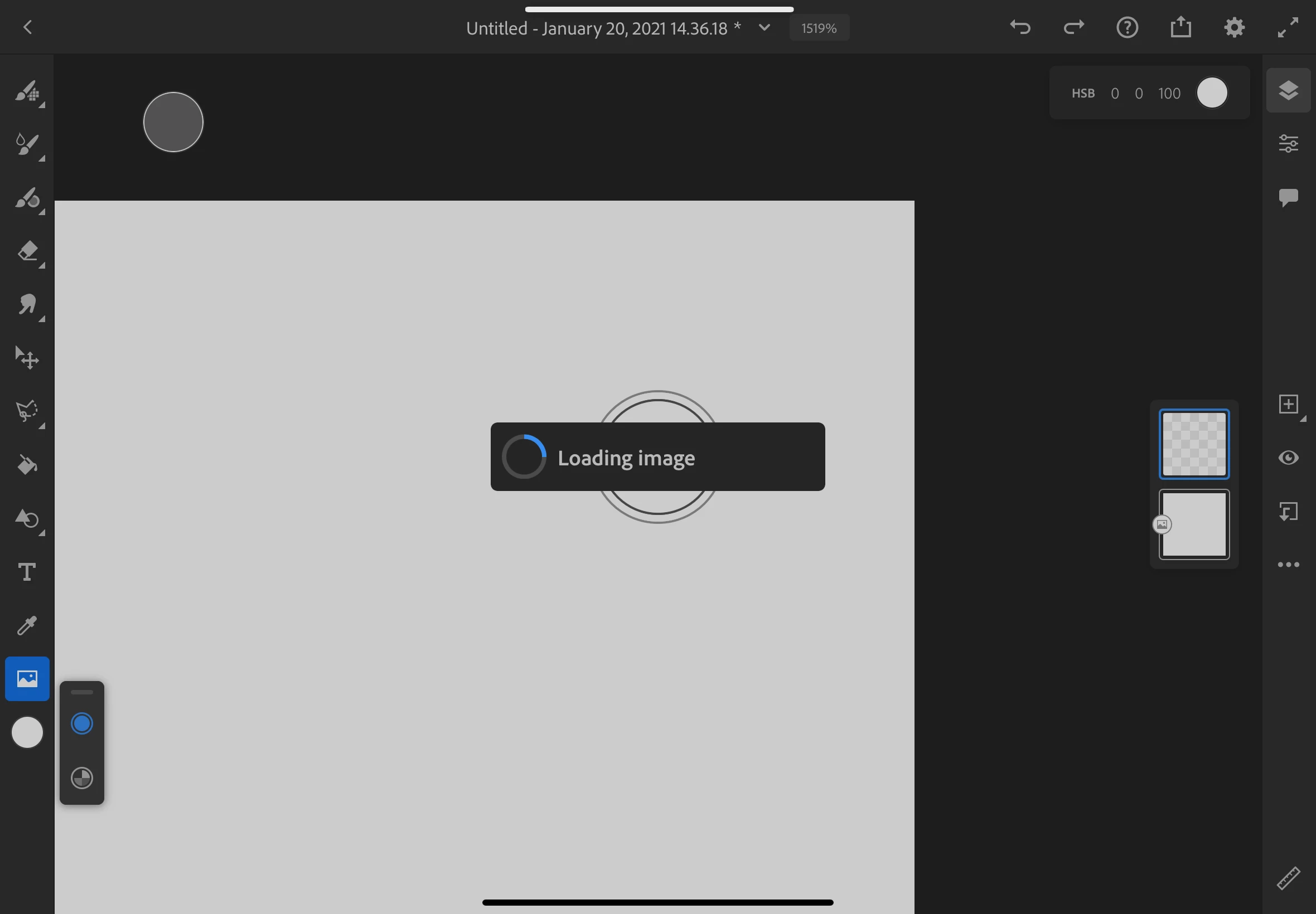 Issues with loading image message on Adobe Fresco