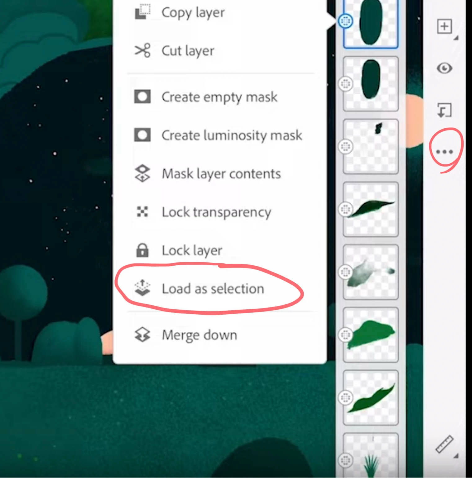 In that video, Kyle is using an internal build of Adobe Fresco; Load as selection is not yet in the AppStore build.