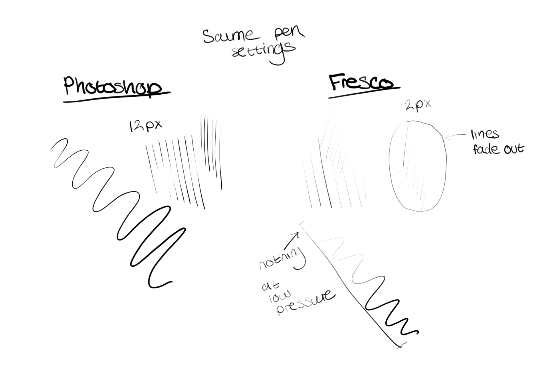 I am using the surface slim pen 2. I have tested it between photoshop and fresco and other software and found that in fresco it is having a problem when light pressure is applied, it seems like the minimum pressure is a noticable amount higher.