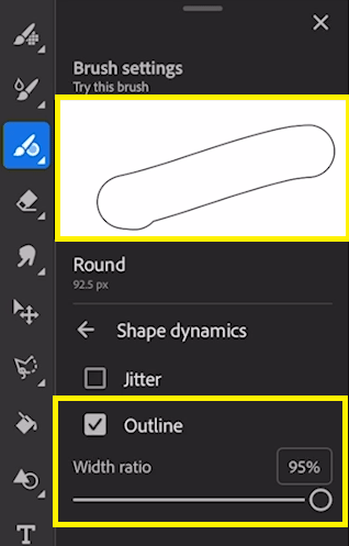 You can combine outline brush capabilities with other controls like jitter, taper and tilt to create completely unique appearances. We’ve included a new default Outline brushes t o help get you started.