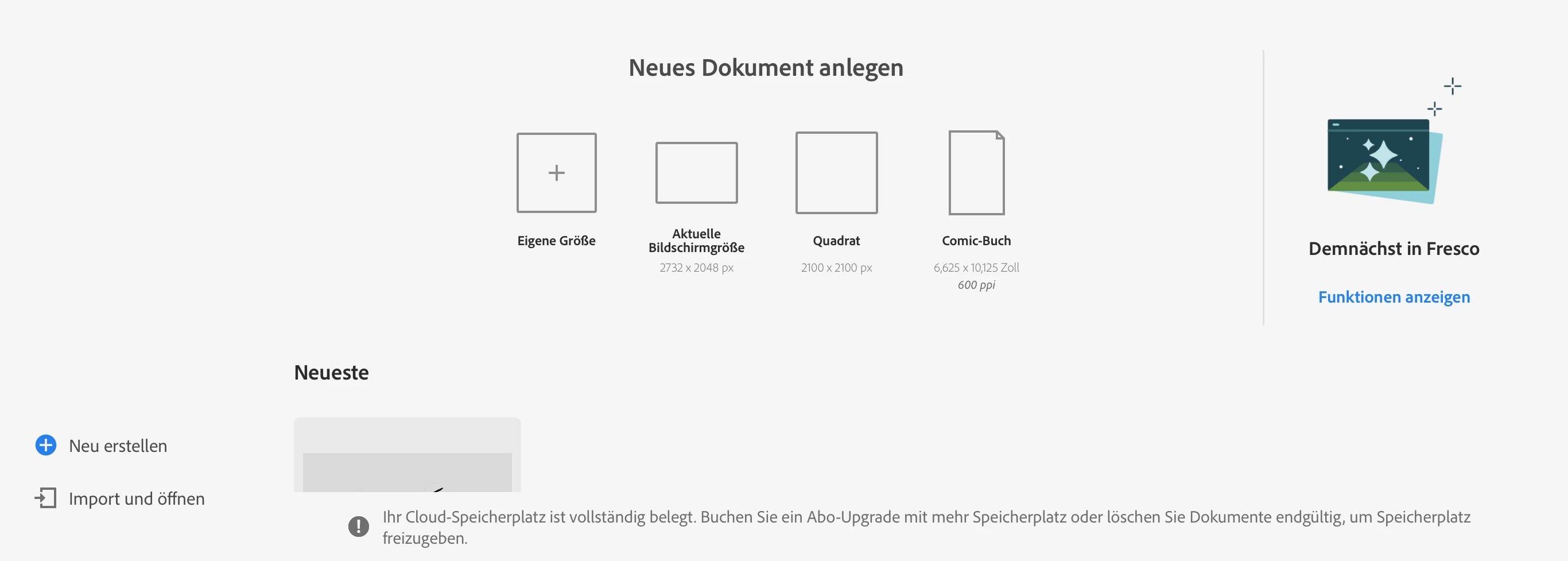 Hi there, I understand what you are seeing right now but we've subscription plans for each product and right now you only have the subscription for Lightroom and if you wish to use Fresco it'll work as a free product for you with limited features. To subscribe to the Fresco plan, please visit plans page: