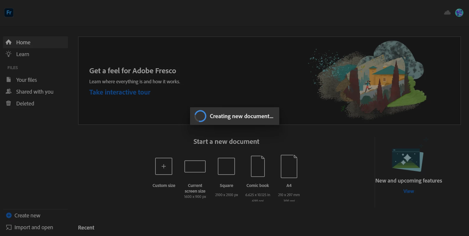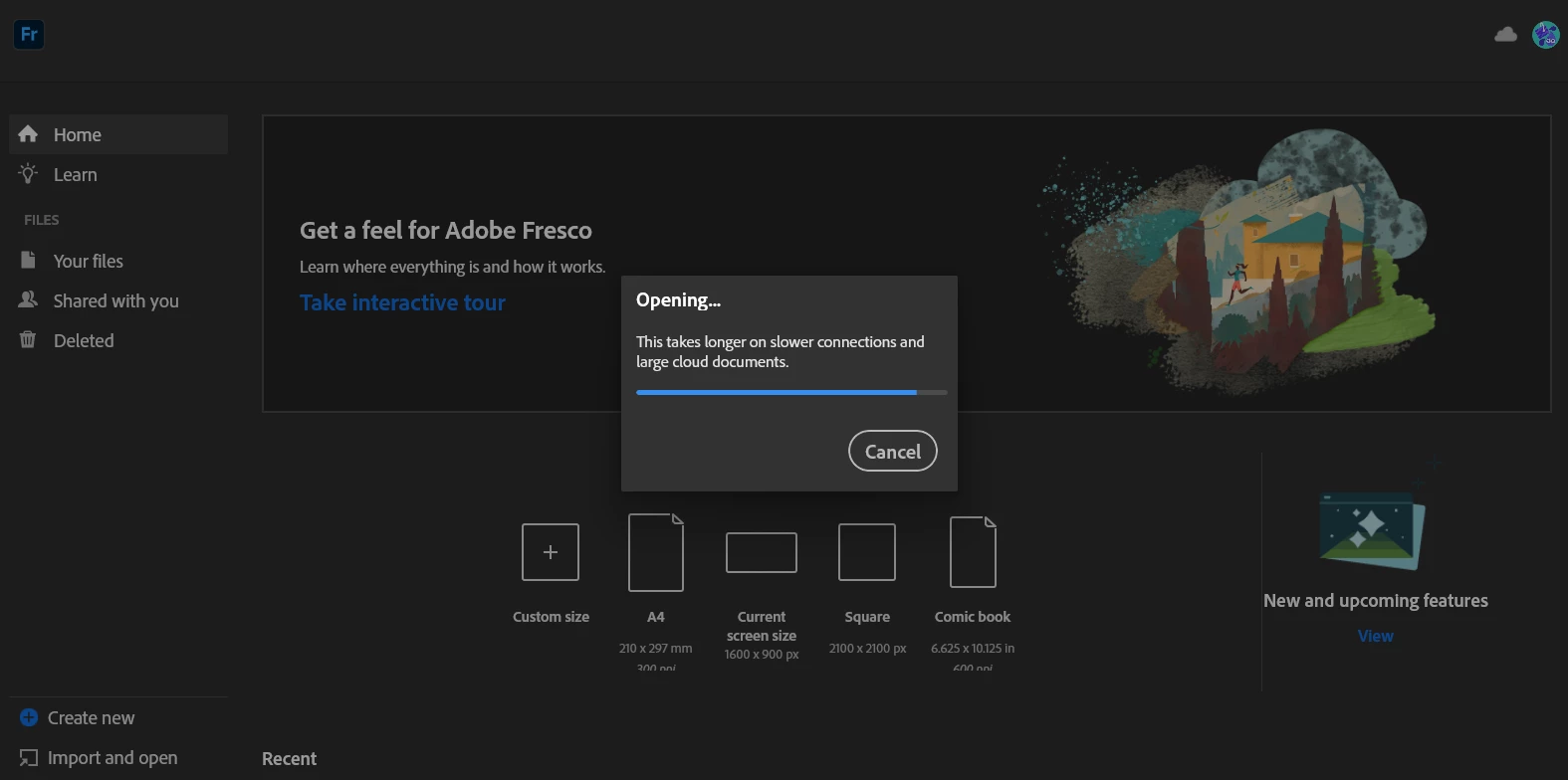 When I open Fresco and open or create a task file, it pops up on the Opening or Creating page, and then freezes and doesn't respond.