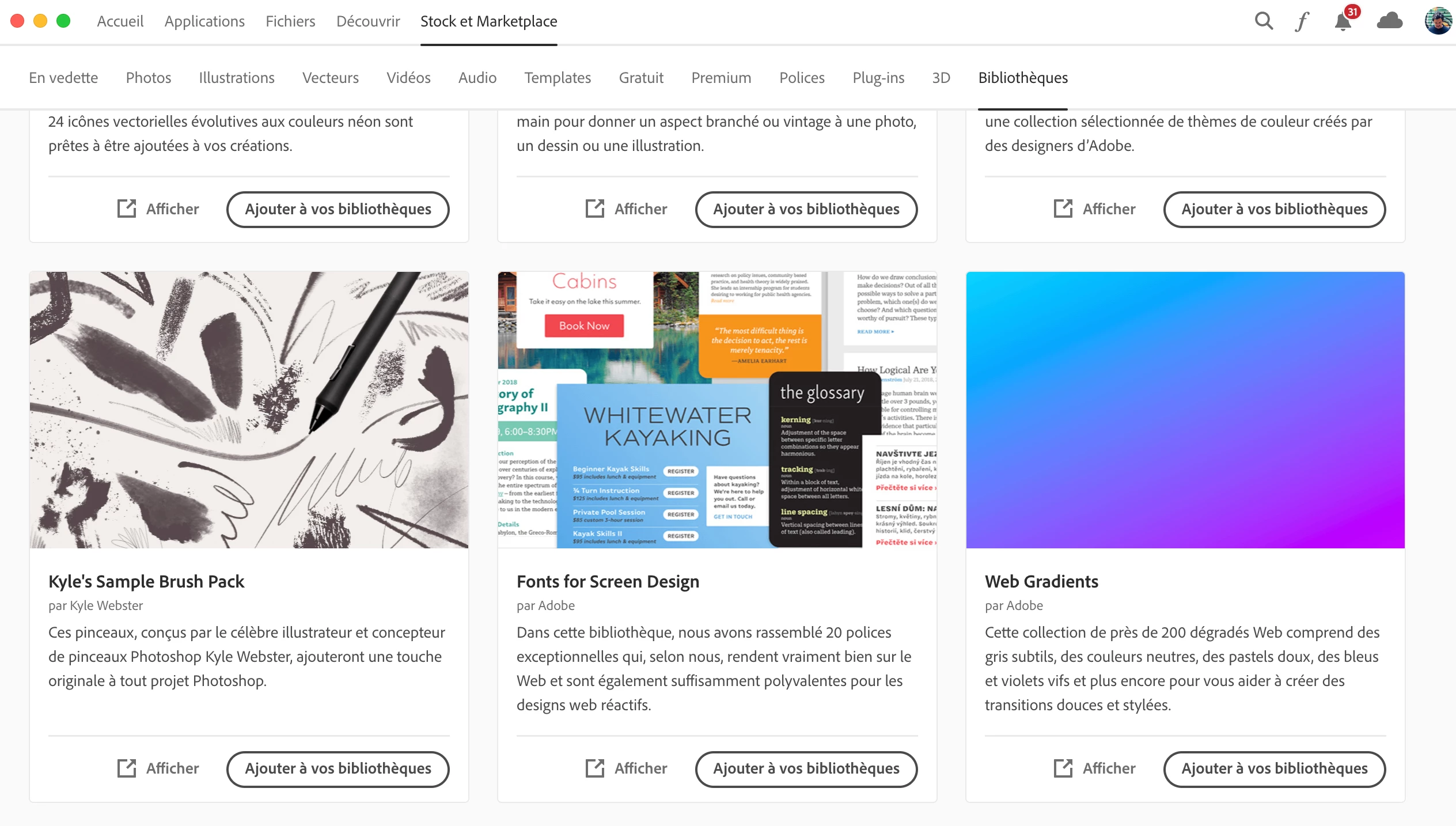 outils, brushs de al bibliothèque Adobe