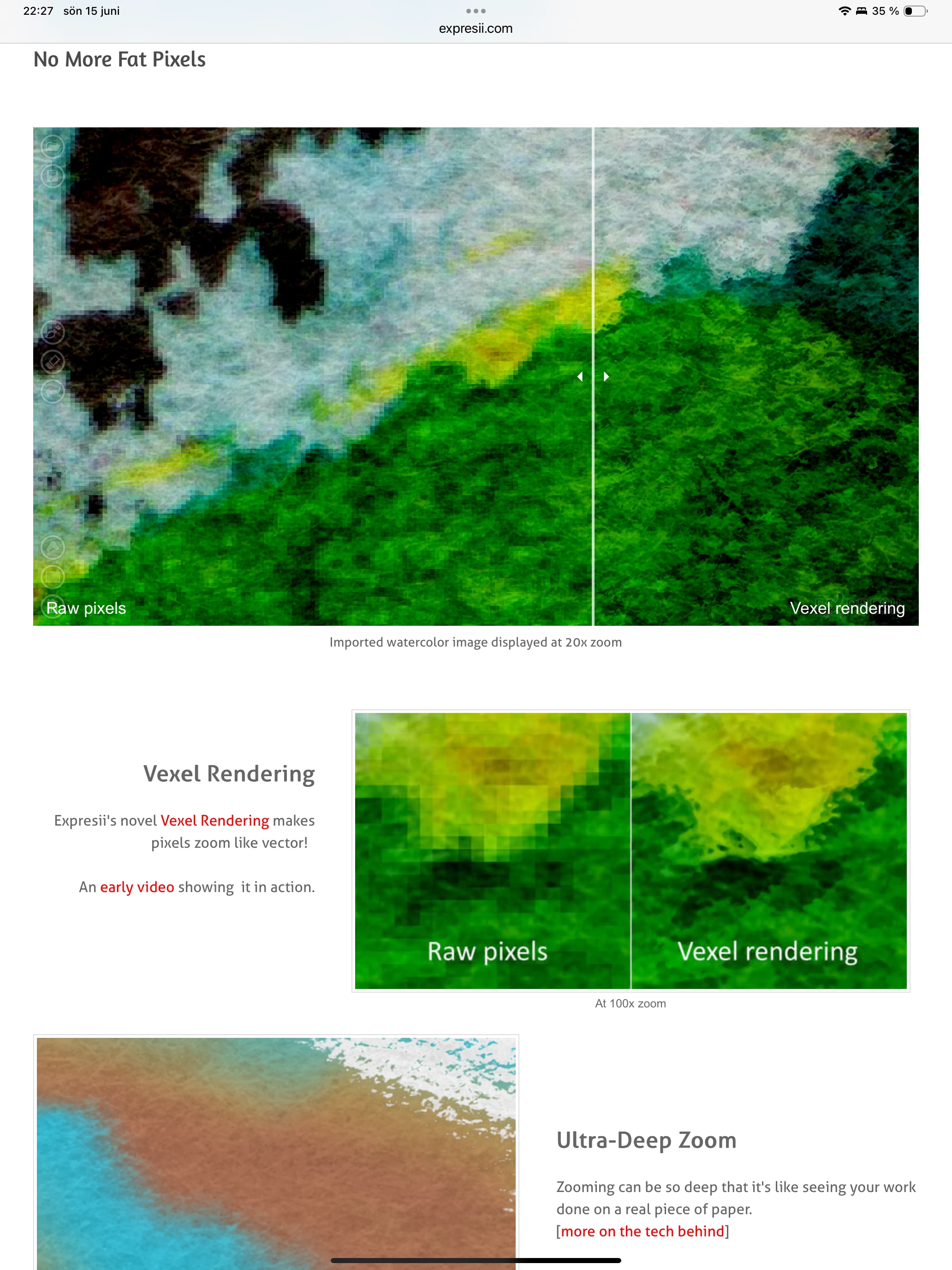 Why is a watercolor painting so pixelated in Fresco? In intuitive, exemplary simple, realistic - and so missed Sketch that was not the case. The magic of painting in Sketch all gone in Fresco, at least for me - not only by the pixelation but also by the behaviour of the watercolor brushes. But now when Sketch is soon terminated nothing else to do then to try once again with Fresco. However, it would be o great help if there was a way of getting the same antialiasing effect in Fresco as in Sketch - also if there was a way to import the Sketch default watercolor brushes to fresco - is there? Many thanks in advance for any answer solving or at least explaining these things