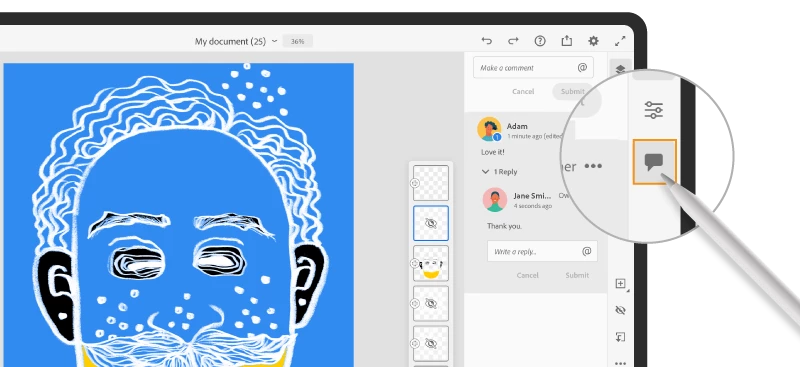 Since these are cloud docs, all the updates will be reflected in real-time allowing artists and reviewers to communicate easily by directly adding comments to the project in Fresco.