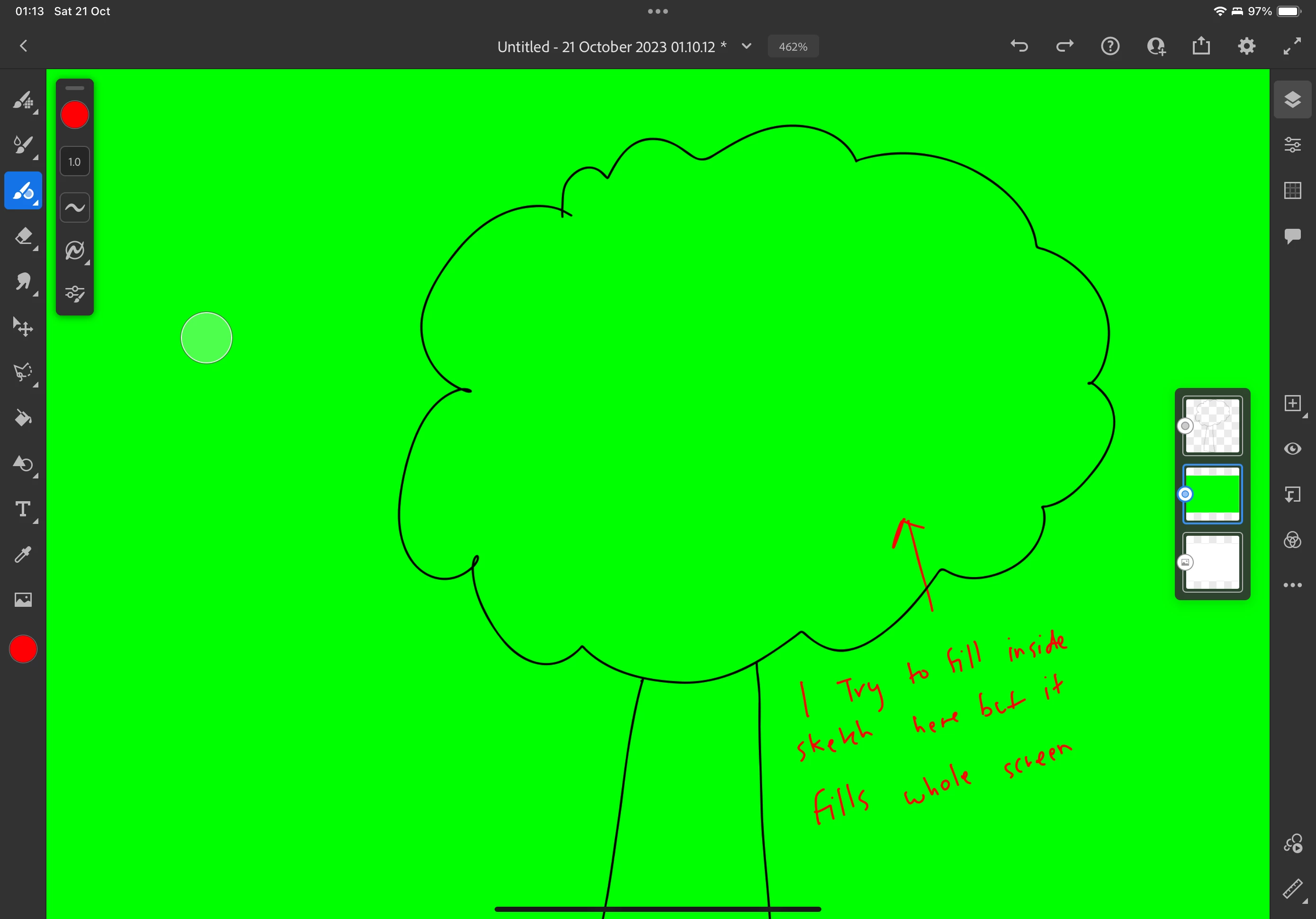 I have a vector layer with some drawing, and I want to create a bottom layer so that I can fill inside the top layer itself. However, the fill tool fills the entire screen from the bottom layer, which I do not want at all. How can I only fill inside the drawing from the top layer?