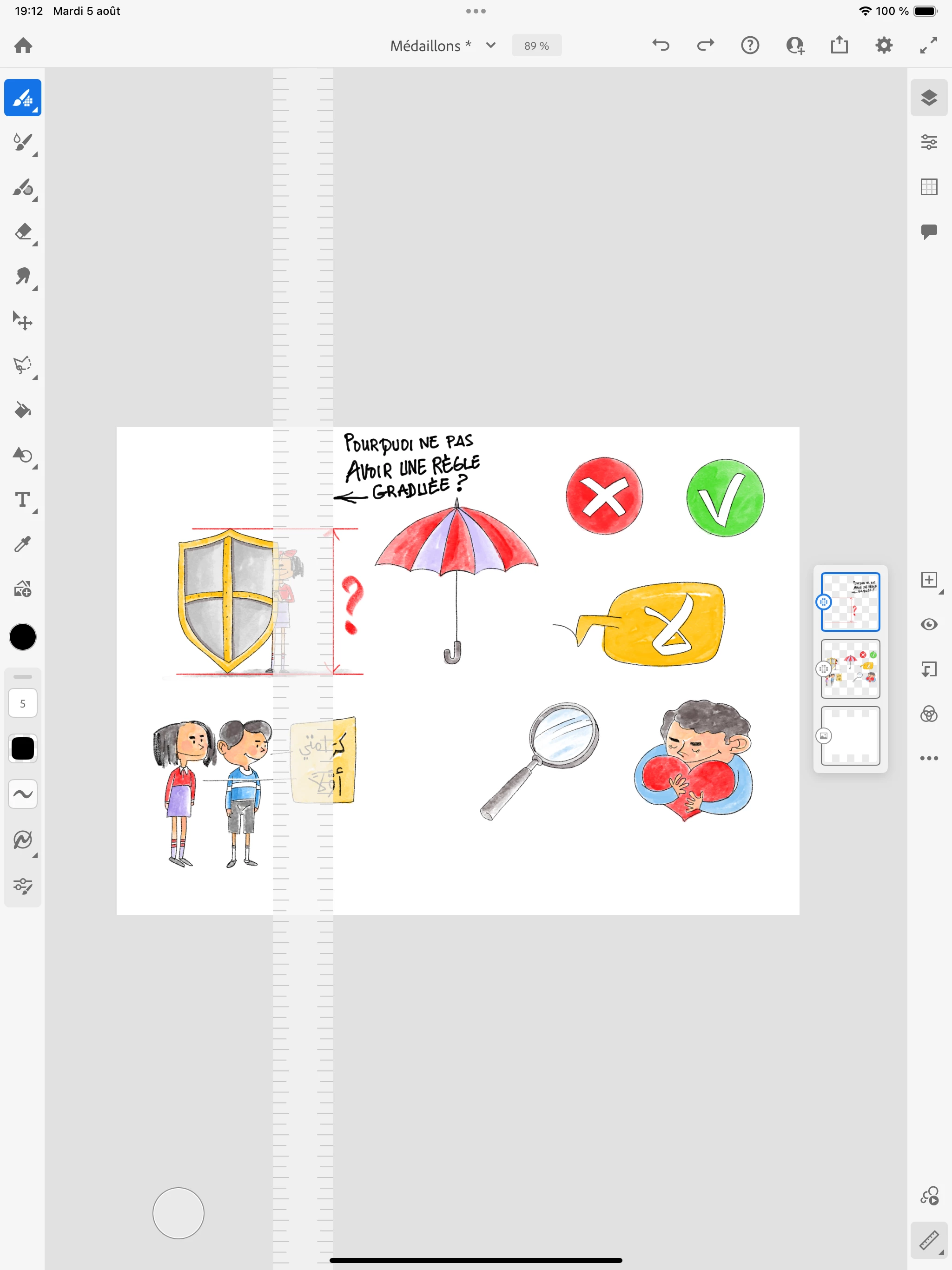 règle avec des chiffres) pour connaître le format de chaque objet dans mon document Fresco? Merci.