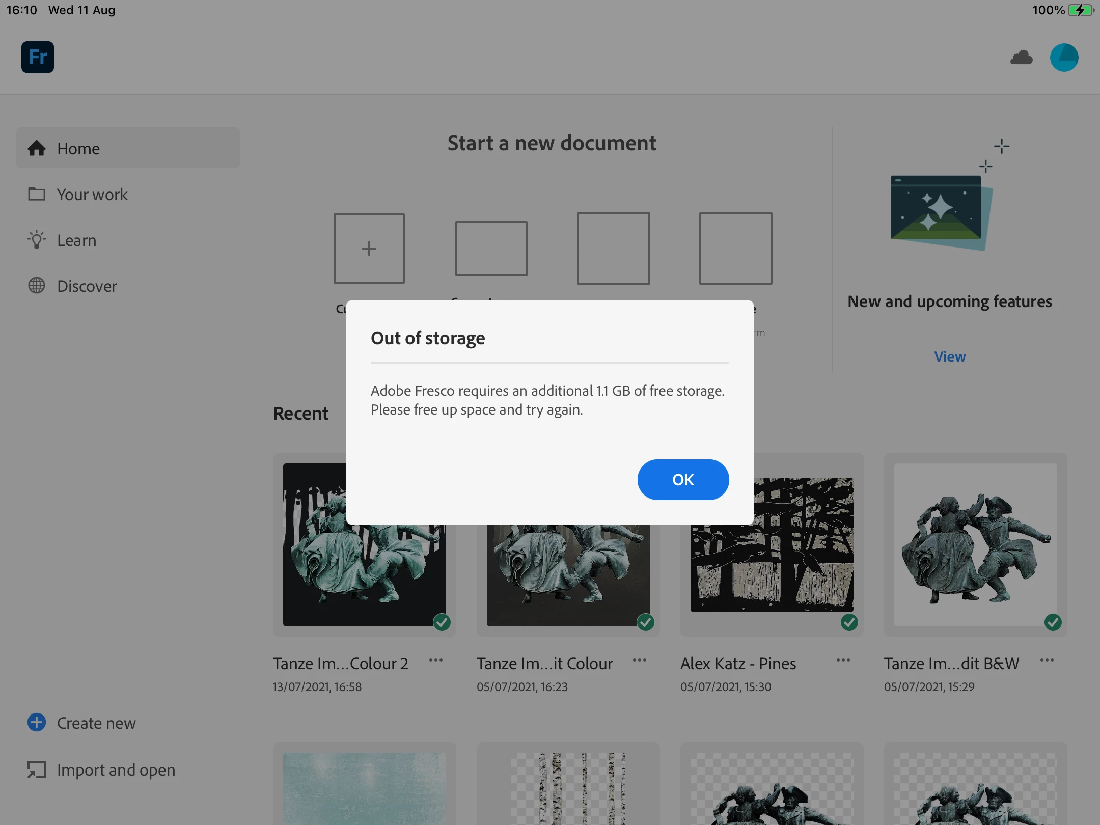 I haven't opened Fresco for a few weeks. I have a paid subscription (most recent payment taken from my account on 4.8.21) which should entitle me to 100GB of storage, but I am unable to open the small number of files (approx 10-12 at present) I have stored in the cloud as I keep getting a window asking me to create more storage space, even though I've hardly used any.