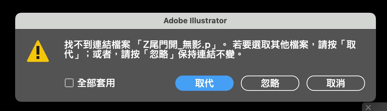 只要有連結檔案的檔案處重新存在後重新開啟檔案連結的副檔案名稱就會連接不完全從.psd變成.p所以找不到檔案連結