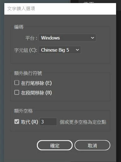 文字讀入選項