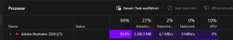The CPU usage causes my entire system to lag and Illustrator also just gets stuck and crashes after a few minutes.