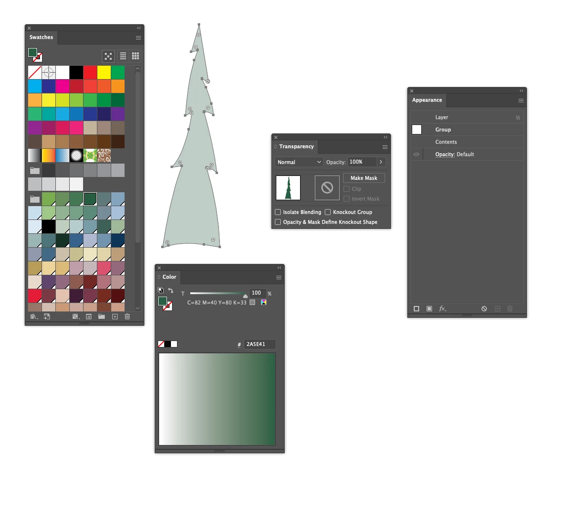 I have a set of swatches that I use in my illustrations in Illustrator. Now I'm experiencing an issue where all swatches seem to be applied with a degree of transparency. All palettes look correct, showing 100%. No layer mode is activated. What could have happened here? I have also tried toggling "Knockout Group" on and off.