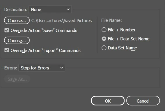 it all loads up fine but when I try create an action to save as a png - it works but it saves over the original file so I'm left with one rather than 100 with different file names?
