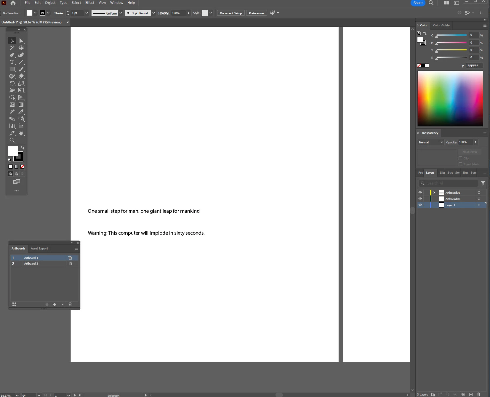 What happens is that both sentences appear on artboard 1 and in layer 2. Screen shot made; not sure if allowed but will try.