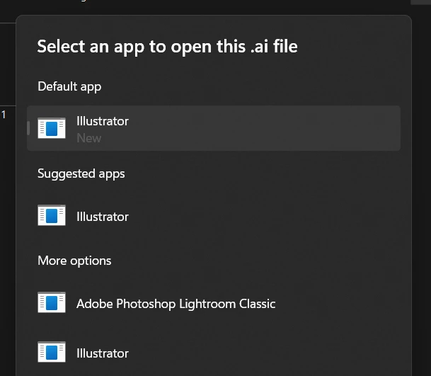 also i tried "right click - open with - Ai" but its still not open it. My adobe file detected as "unknown application"