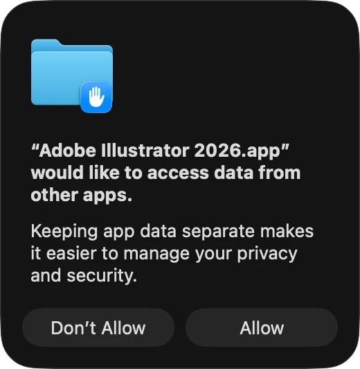 "Adobe Illustrator 2026.app" would like to access data from other apps."