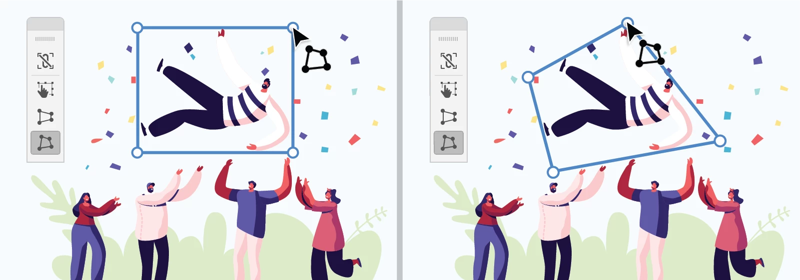 We’ve made some improvements in the way the Free Distort tool works. It now lets you seamlessly edit the object without resetting the bounding box.