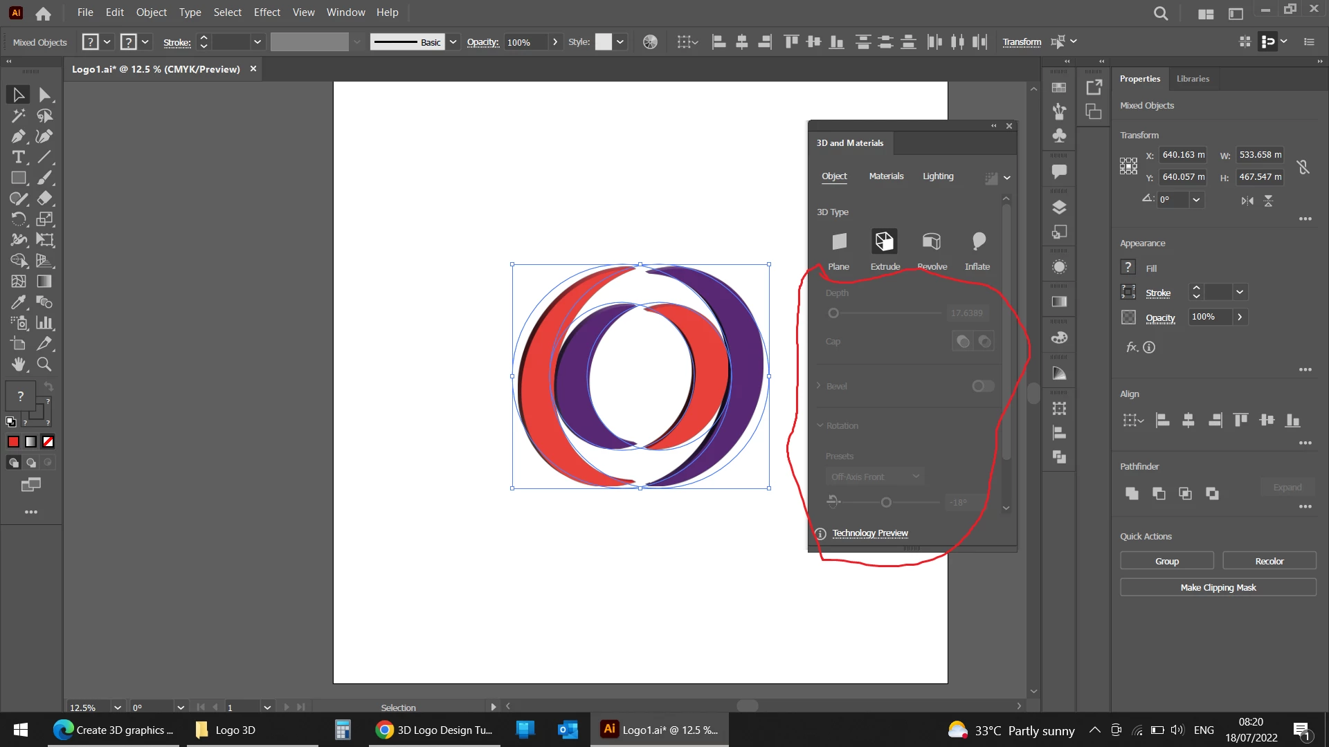 I believe that if you select a single path the options will become available; or if you remove the effect from all the individual paths, group them, then re-apply the 3D effect to the group, the options will be available when the group is selected.