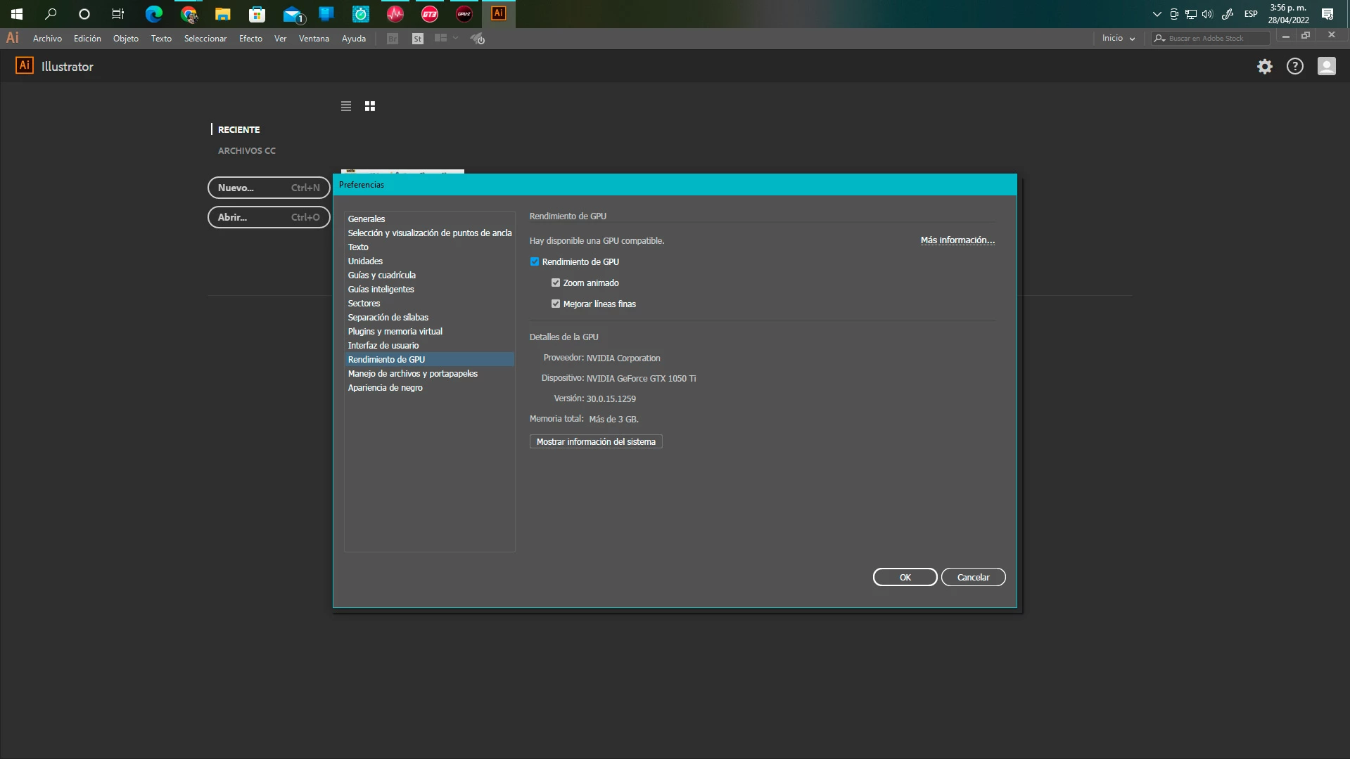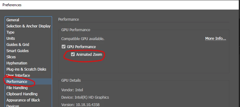 Adobe Illustrator recognizes my graphics card (in preferences), but it is not allowing me to perform the actions that I could perform before, such as animated zoom, etc.