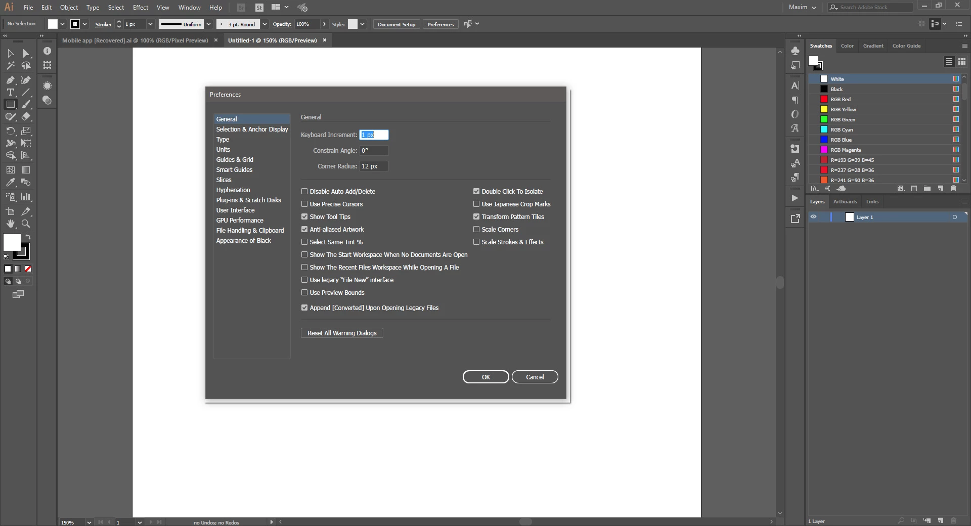 Adobe Illustrator CC 2015, 2017 have unnecessary border in pop-up windows