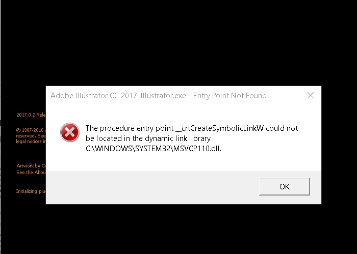 Adobe illustrator CC 2017: Illustrator.exe - Entry Point Not Found